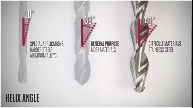 涂層根據使用的范圍可以大致分為以下5種: 無涂層: 無涂層的刀具最便宜,通常用于加工鋁合金、低碳鋼等一些材質比較軟的材料。 黑色氧化涂層: 氧化涂層可以提供比無涂層刀具更好的潤滑性,在抗氧化和耐熱性方面也更好一些,在使用壽命上可以提高超過50%。 氮化鈦涂層: 氮化鈦是最為常見的涂層材料,不適用于加工硬度比較高和加工溫度高的材質。 碳氮化鈦涂層: 碳氮化鈦是從氮化鈦發展而來,擁有更高的耐高溫和耐磨性,通常為紫色或者藍色。在哈斯的車間里用來加工鑄鐵材質的工件。 氮化鋁鈦涂層: 氮化鋁鈦比以上所有的涂層都要耐高溫,所以能使用在更高的切削環境下。比如說加工高溫合金。同樣也適用于鋼和不銹鋼的加工,但是由于其中含有鋁的元素,在加工鋁時會發生化學反映,所以要避免加工含鋁的材料。 一般來說,含鈷鉆加上碳氮化鈦涂層或者氮化鈦涂層是個更為經濟的解決方案。 3幾何特征 幾何特征可以分為以下3個部分: (1)長度 長度與直徑的比叫做倍徑,倍徑越小剛性越好。選擇一個刃長剛好排屑而且懸長盡量短的鉆頭能提高加工時的剛性,從而提高刀具的使用壽命。刃長不夠很可能會損壞鉆頭。 (2)鉆尖角度 118°的鉆尖角度可能在加工中最為常見,通常用于加工低碳鋼、鋁等軟金屬。這種角度的設計通常是不具備自定心功能的,這意味著無可避免的要先加工定心孔。135°的鉆尖角度通常具有自定心功能,由于無需加工定心孔,這將會讓單獨鉆定心孔不再成為必要的工序,從而節省大量的時間。 (3)螺旋角度 對于絕大多數的材料來說30°的螺旋角度是個非常好的選擇。但是對于需要排屑更好,切削刃的強度更高的環境,可以選擇螺旋角度更小的鉆頭。對于難以加工的材料比如說不銹鋼,可以選擇螺旋角度更大的設計來傳遞扭矩。