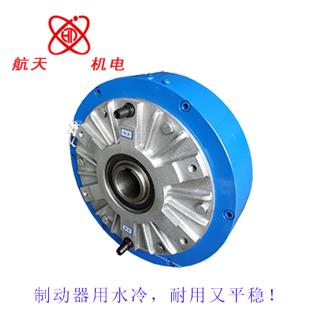 再談談市場上另一類冷卻,也是目前冷卻效果比較顯著的方式——水冷。在磁粉制動器電樞內部及轉子內部預置水腔,工作時冷卻水在水腔中流走,帶走磁粉制動器工作熱量,大幅提高工作穩定性,顯著提高磁粉制動器的許用轉速,明顯延長使用壽命。根據對比,在相同工況,相同環境下,水冷與不水冷的磁粉制動器使用壽命相差3倍左右。下圖這臺水冷磁粉制動器使用整八年,而這家單位同期一臺原裝進口磁粉制動器中途已換過一次,當前力矩下降正準備二次更換。