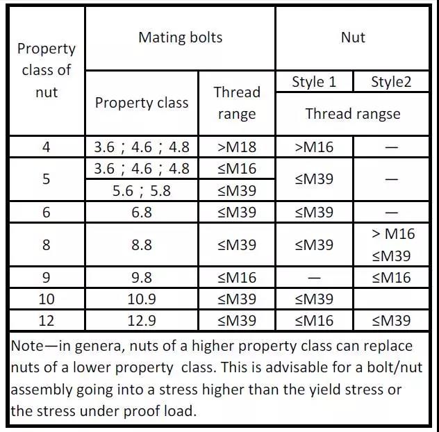 按照ISO898要求,與螺栓配合的螺紋副/螺母強度要與螺栓本身強度相匹配,比如螺栓強度為10.9的螺栓,應采用強度為10的螺母。