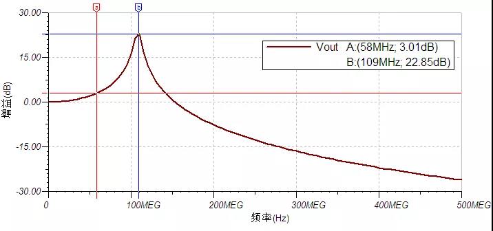 圖9 接地夾線等效電路圖 下圖為用該等效電路仿真出的頻譜特性曲線: